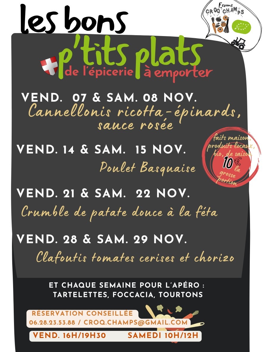 Si vous avez du monde à la maison, vous pouvez nous commander un petit plat bio spécialement pour vous (nous contacter au moins une semaine à l’avance).