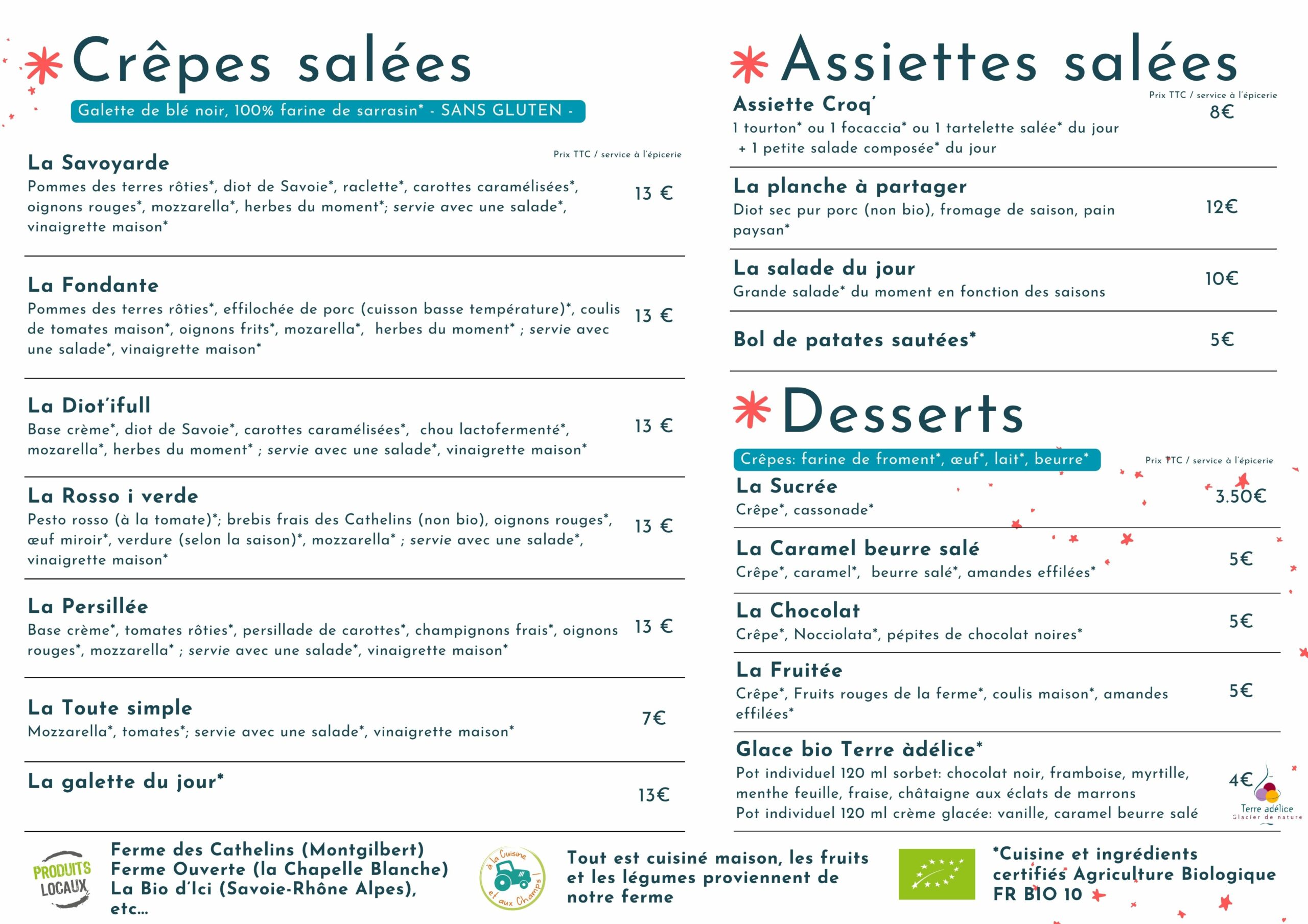 La galette de blé noir pour le salé et la crêpe de froment pour le sucré, c’est notre spécialité… Cuisinées minutes, qu’avec des produits bio et locaux, il y en a pour tous les goûts, des papilles les plus aventurières à celles plus traditionnelles!